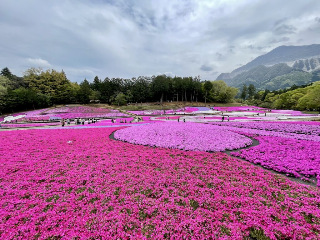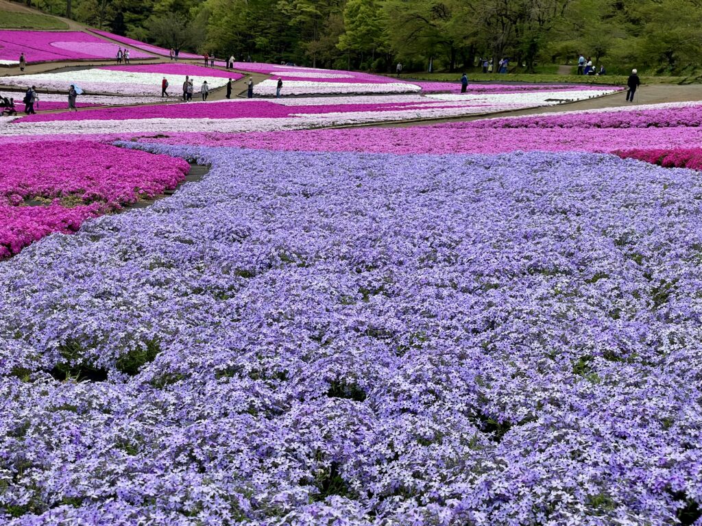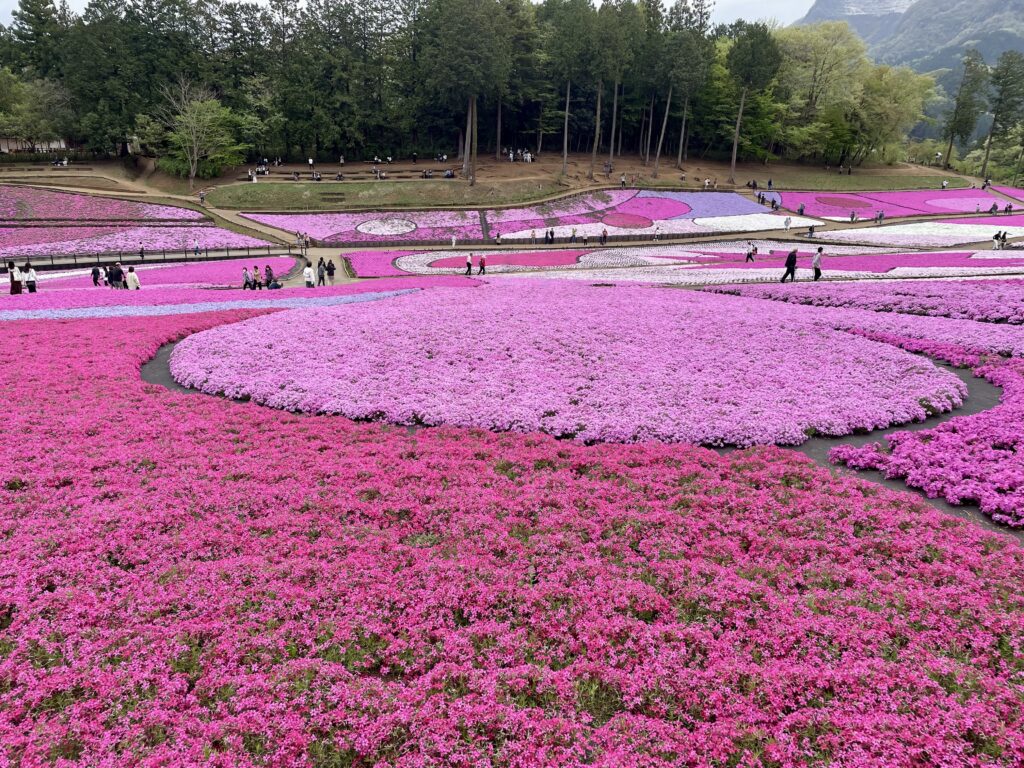ピンクや白、紫など色とりどりの芝桜が広がる景色は圧巻で、