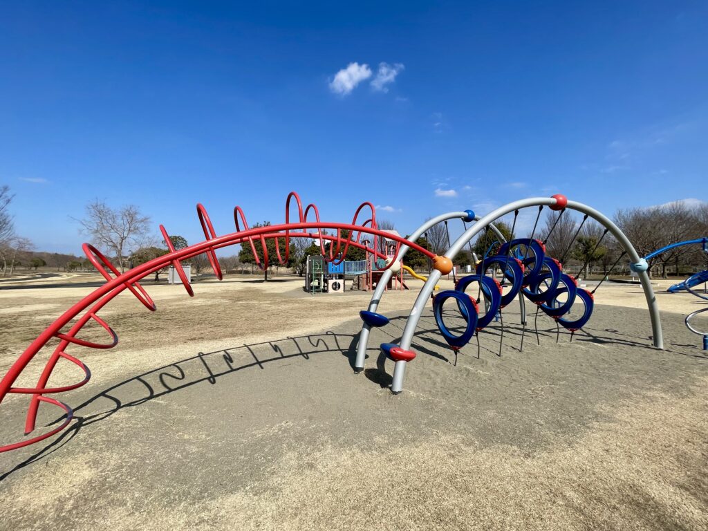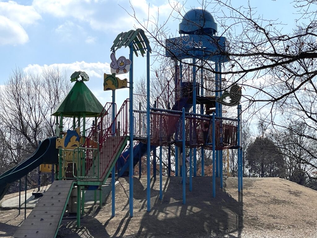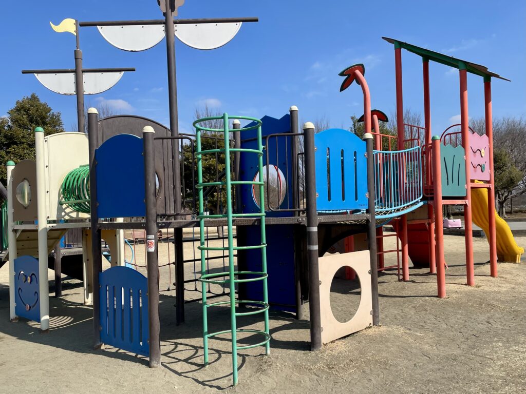 10分歩いた先に現れるのは、子供たちが狂喜乱舞する2大遊具エリアです。隣り合ってはいますが、醸し出している雰囲気は微妙に違います。