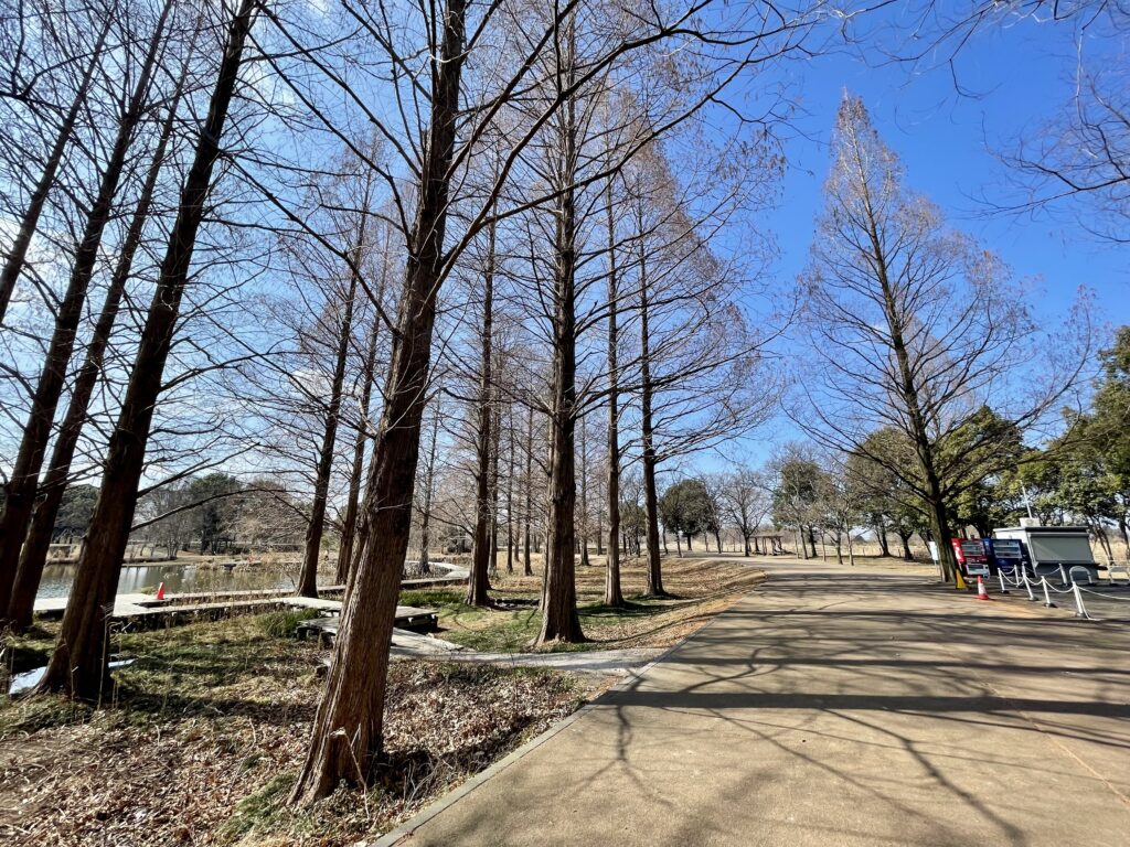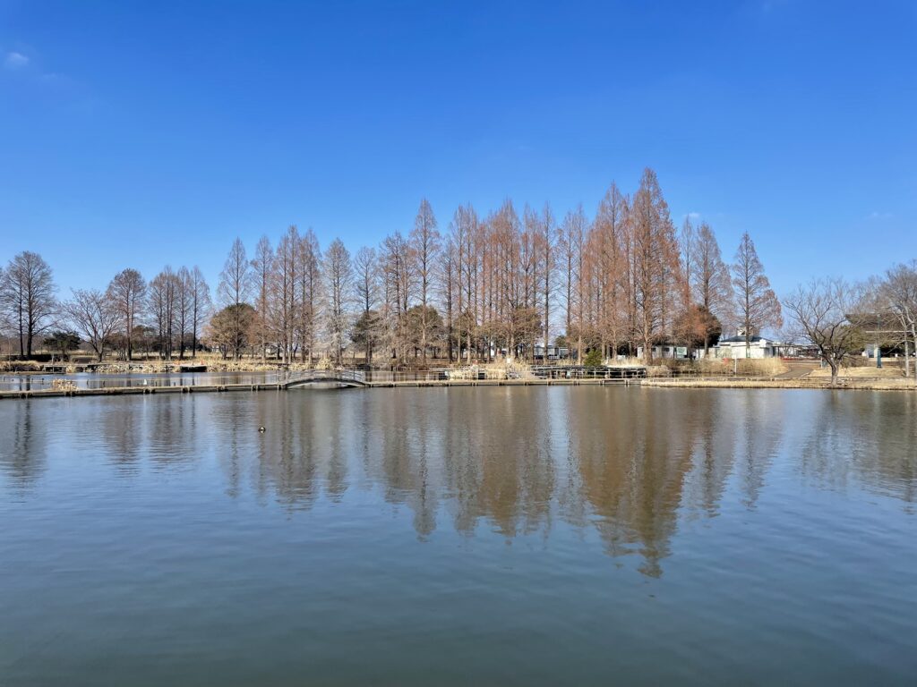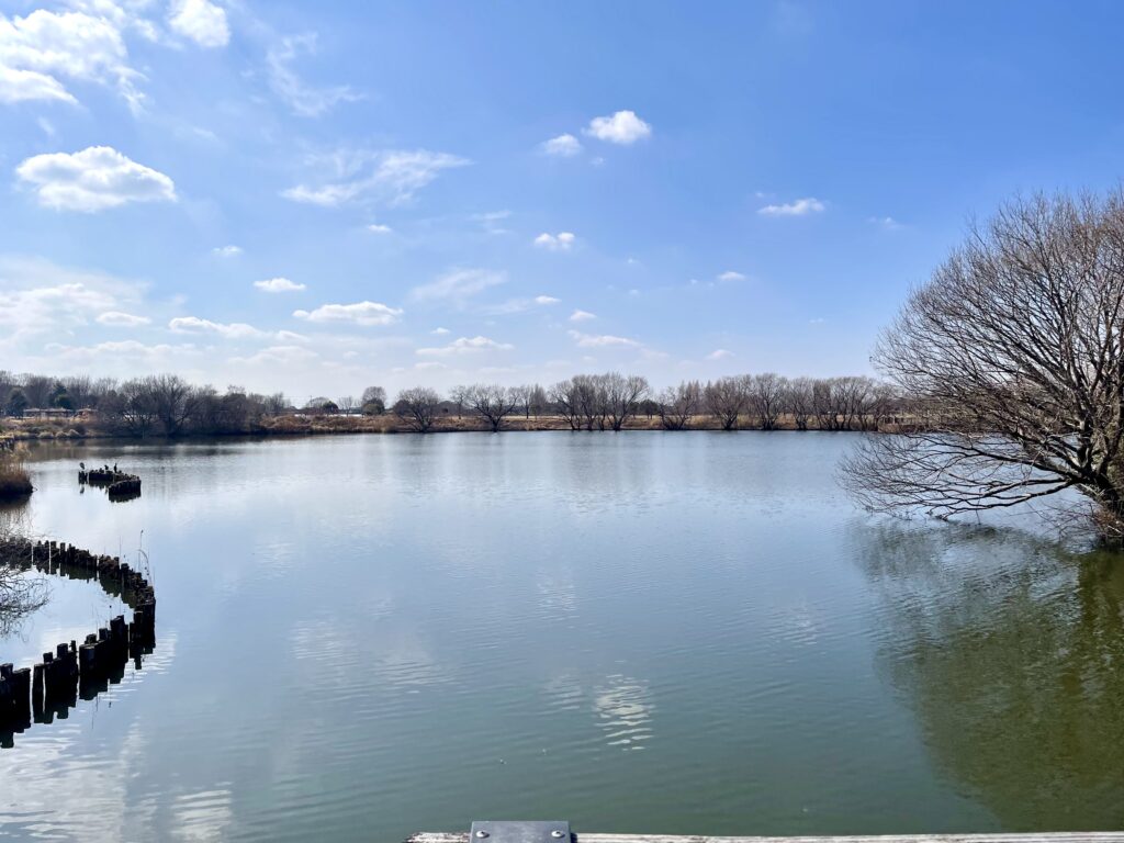 道中はきれいに整備された遊歩道。途中に現れる池を眺めながら、「あぁ、埼玉って広いな…」と遠い目をするには最高の時間です。