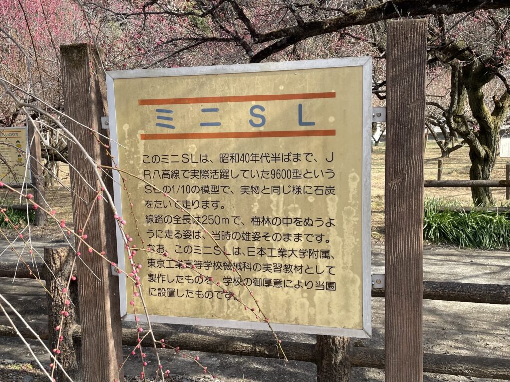 梅林の間を縫うように走るミニSL(運行日限定)など、家族連れやカメラ愛好家にとっても見どころが満載のスポットです。
